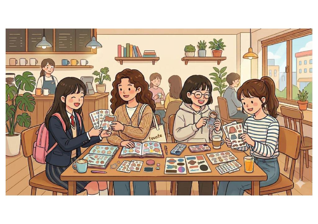 - 현장 소식: 지금 도쿄 MZ세대와 수집가들 사이에서 가장 핫한 곳은 하라주쿠의 시어푸쿠(しぇあぷく) 같은 씰 전용 카페입니다. 이곳은 단순히 물건을 파는 상점이 아니라, 자신의 바인더를 들고 와 서로의 수집품을 이미지를 감상하고 교환하는 커뮤니티 공간으로 운영되고 있습니다.