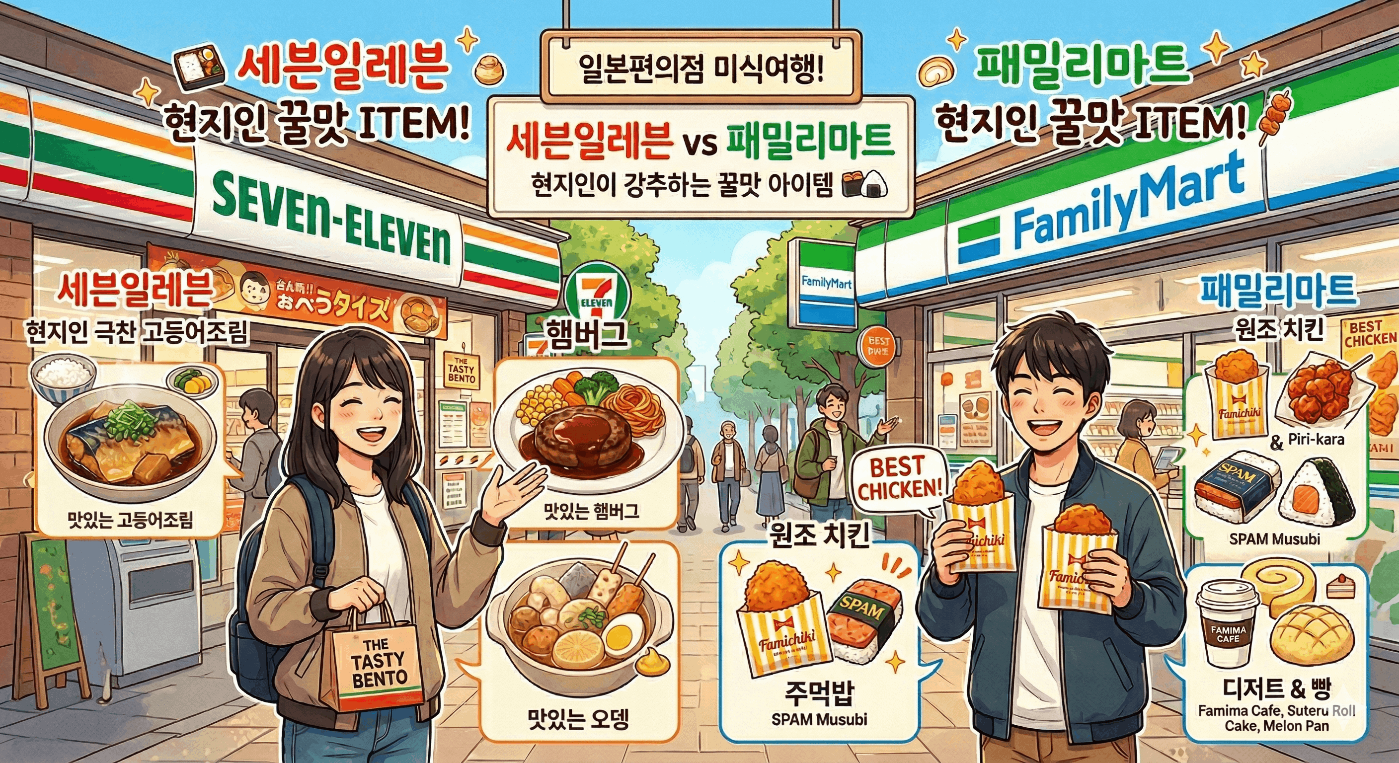 안녕하세요! 오늘은 일본 여행의 참맛, 편의점 대결을 준비했습니다. 흔한 가이드북 리스트가 아니라, 현지인이 입이 마르도록 칭찬하는 진짜 ‘개꿀 아이템’들만 모았습니다. 일본 편의점은 브랜드마다 강점이 확실하니 목적에 맞게 골라보세요! 🧐